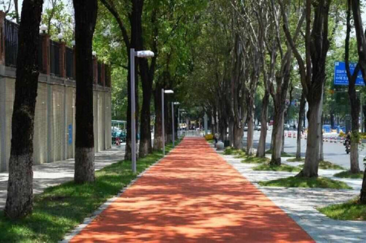 在推进品质提升过程中,将环保节能贯彻始终。坚持利旧修补原则,共利用原有铺装、建筑材料约15万平方米;使用由再生材料制成的透水砖、透水混凝土等共计约60万平方米。有效减少源头资源消耗,降低废气、废渣排放,实现建筑垃圾的减量化、资源化、无害化处置,助力打造历史上首届“碳中和”全运会。